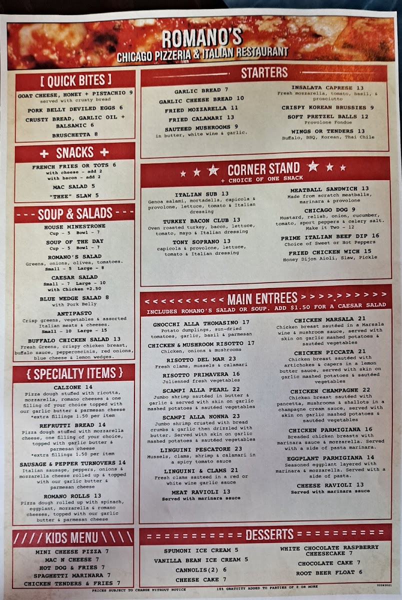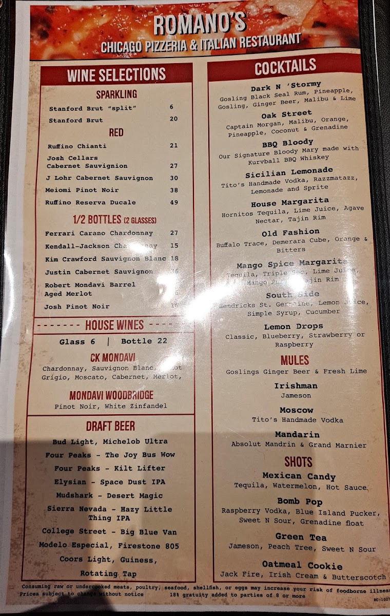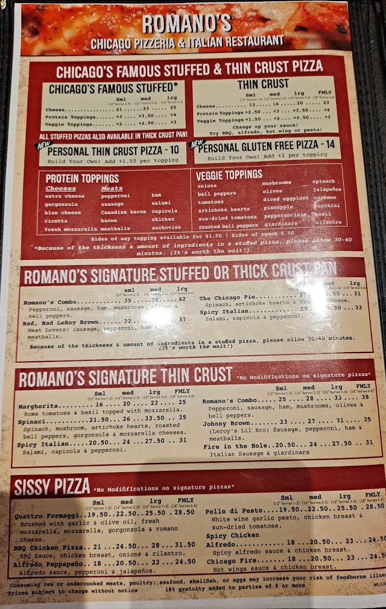 Welcome to Romano's Chicago Pizzeria, a charming eatery located at 1519 Queens Bay, Lake Havasu City, AZ. This pizzeria is not just about pizza; it offers a delightful menu brimming with enticing dishes. Customers rave about their unique spaghetti, featuring a sauce that's refreshingly different, and seafood risotto that pleases the palate.